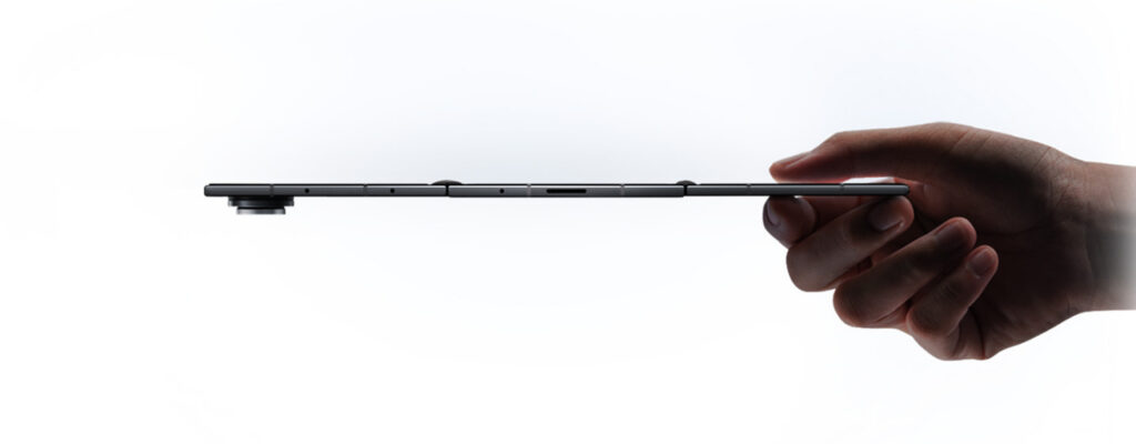Enfermés derrière une vitre transparente, les visiteurs ont pu observer les principaux éléments de conception du mécanisme trifold, qui utilise un système de pliage vers l’intérieur des deux côtés. À l’état déplié, l’appareil mesure environ 4,2 millimètres d’épaisseur, ce qui est comparable au dernier Galaxy Z Fold7 de Samsung. Lorsqu’il est plié, son épaisseur varie entre 1,2 et 1,5 centimètre. Bien que les spécifications officielles n’aient pas été communiquées, les observateurs ont estimé que la taille de l’écran déplié était d’environ 10 pouces. Notamment, les lignes de pliage souvent observées sur les écrans pliables seraient « à peine perceptibles ».